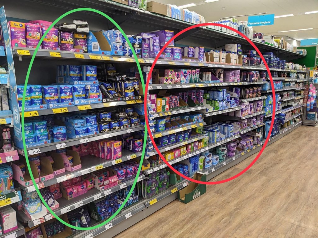 This looks like an unspoken epidemic in the UK with the incontinence pads taking up more room in the supermarket than period products. (three sets of shelves to one)